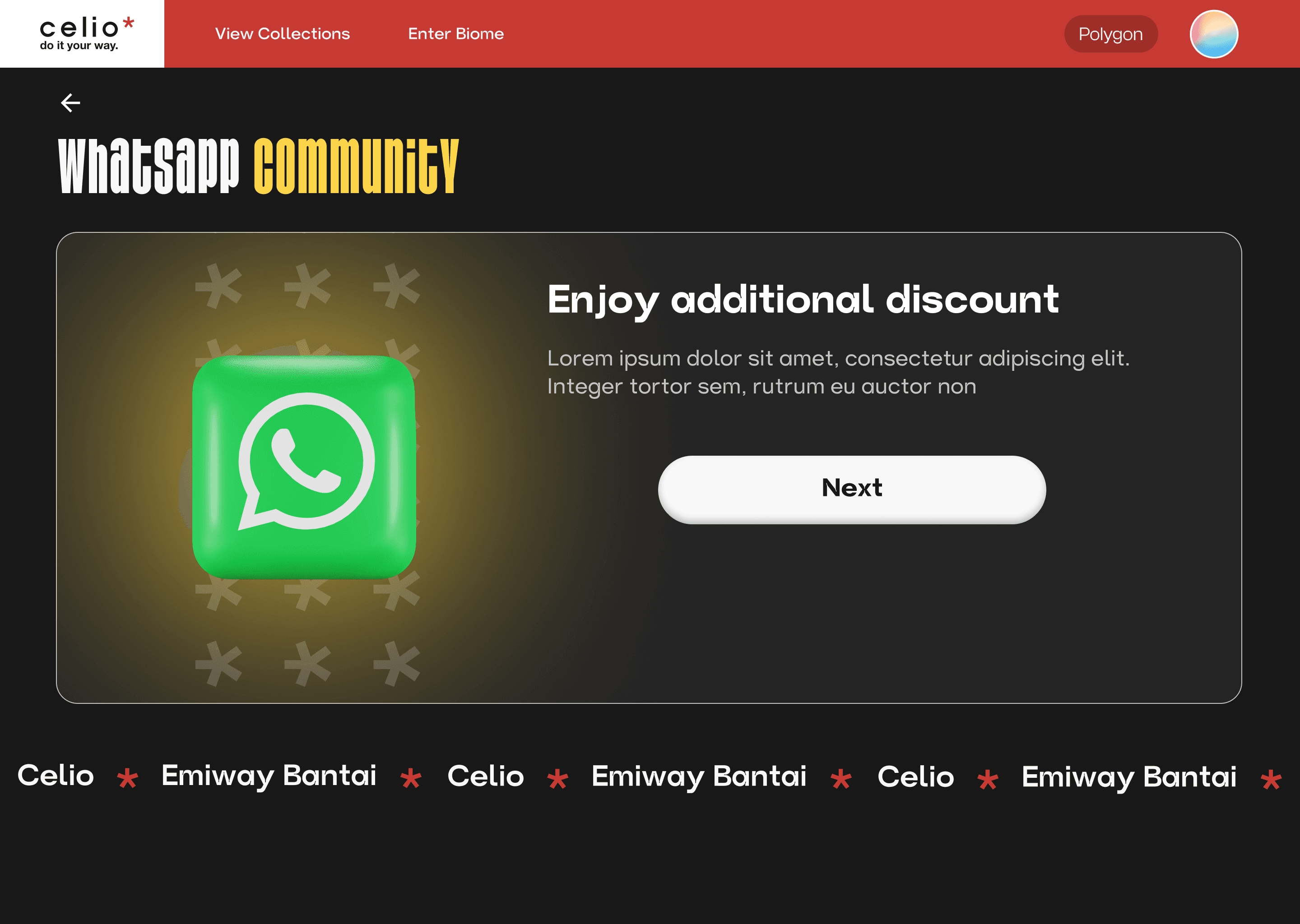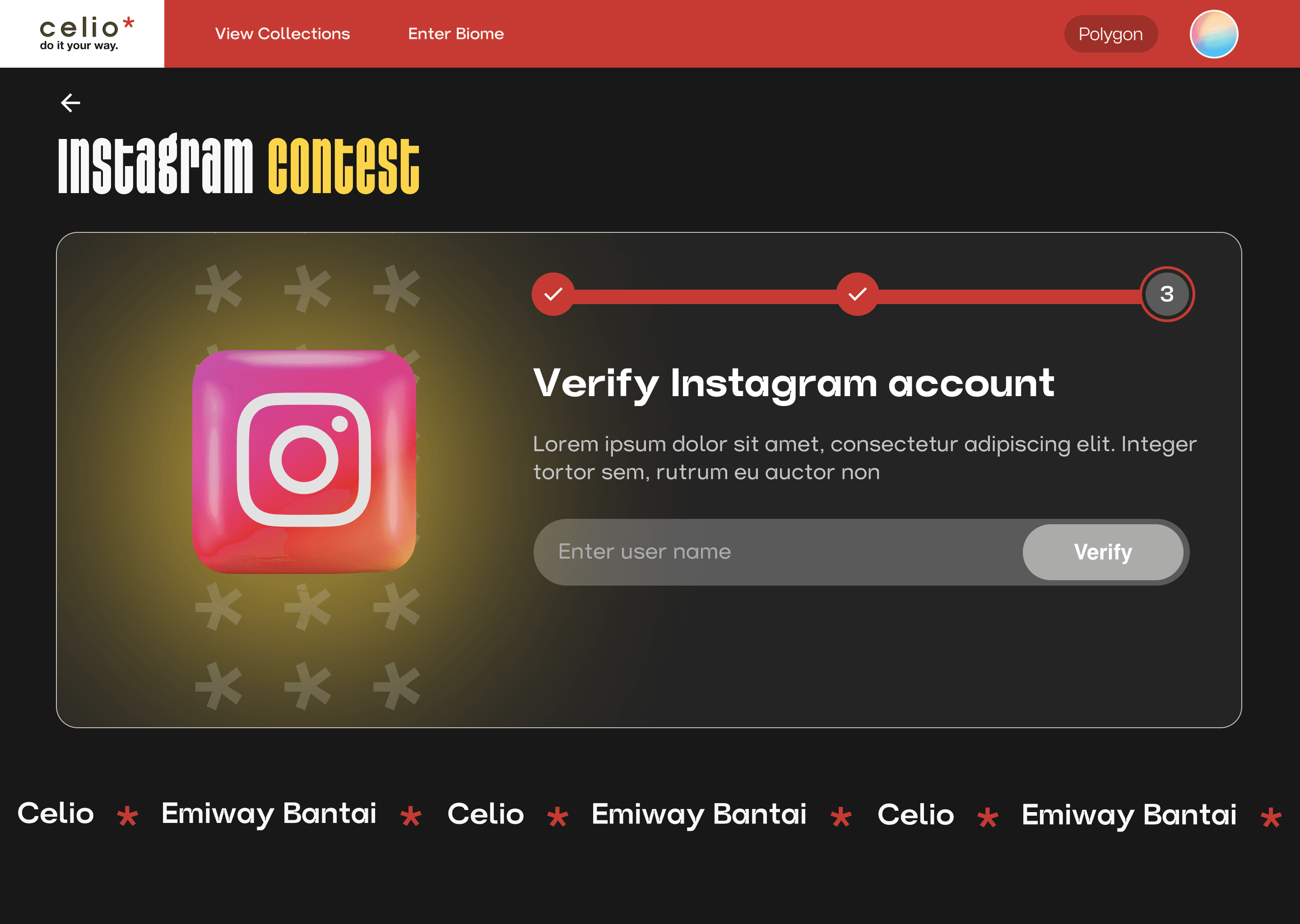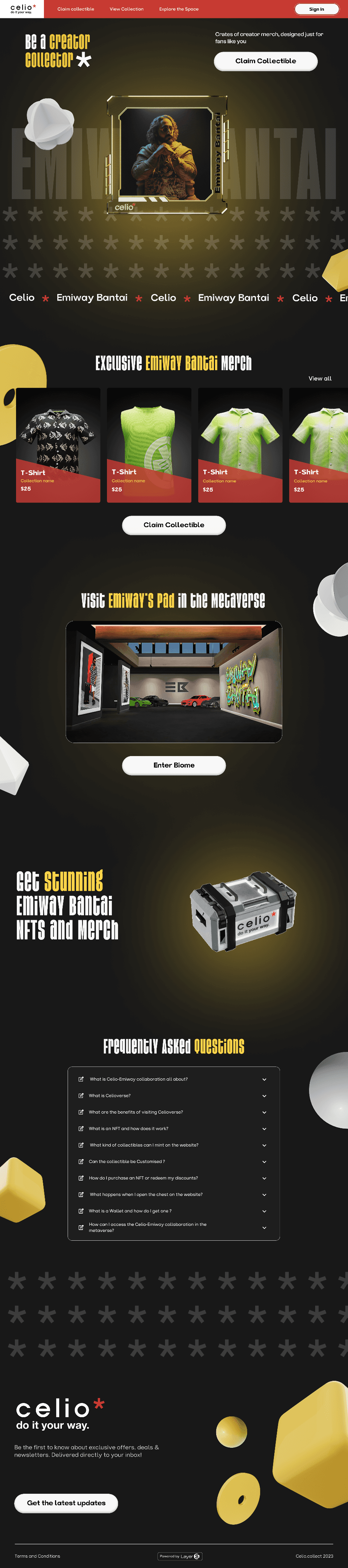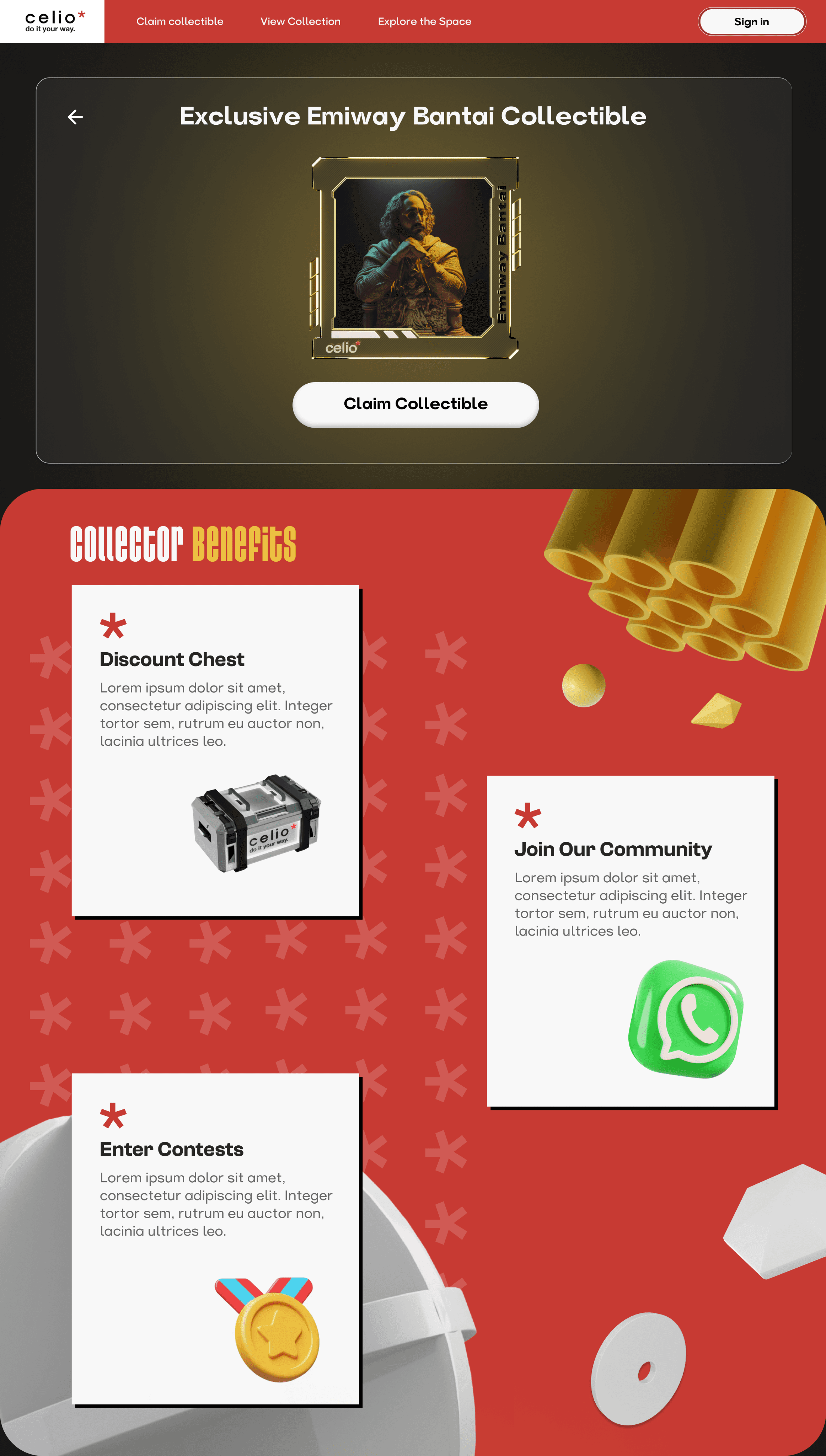 The Celio X Emiway collaboration brings together the renowned clothing brand Celio and popular Indian rapper Emiway Bantai in an exciting campaign. The proposed website serves as a central hub for the #DoItYourWay merchandise, allowing users to browse and purchase items while also providing a platform to claim exclusive Emiway NFTs. Additionally, the site offers engaging contests where users can participate for a chance to win exciting prizes, enhancing their overall experience.