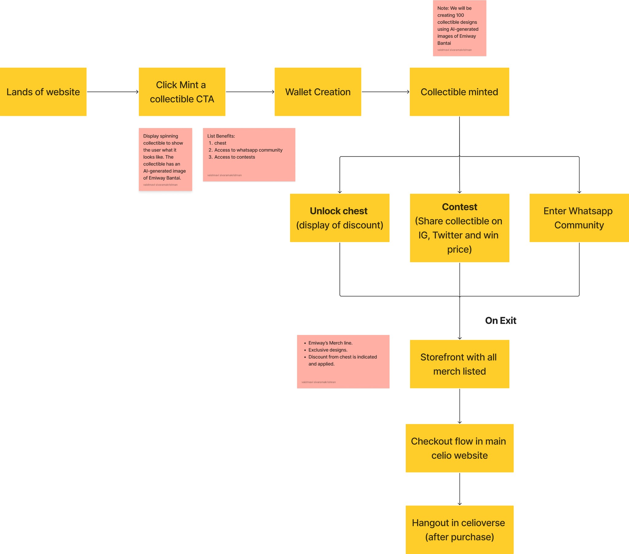 Based on the research, the team developed a straightforward user flow for minting collectibles and participating in the contest. A key focus was addressing the challenge of creating a Web3 wallet for new users. After several meetings and discussions with the development team, we decided to implement Sequence Wallet, allowing new users to easily create wallets through their Gmail, Apple, email, or Facebook accounts.